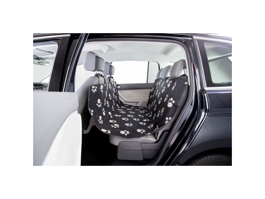Autopotah nylon/flís, černý s béžovými packami 1,40 x 1,45 m