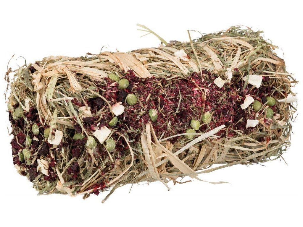 - složení: seno (90 %), sušený pastiňák (3 %), sušená červená řepa (3 %), hrášek (3 %), petržel (1 %)