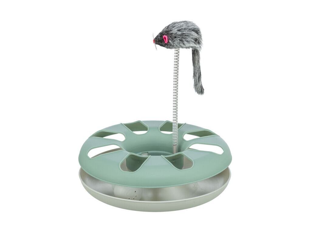 - aktivní hračka pro kočku, která tlapkou honí míček uzavřený v kruhu