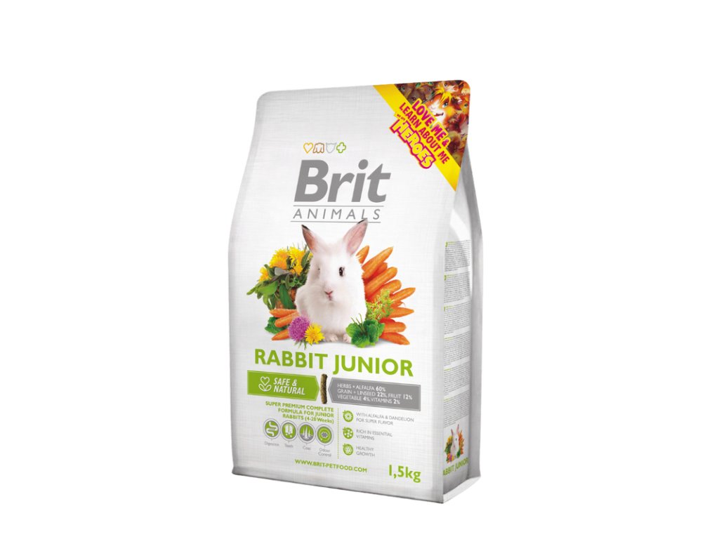 Brit Animals RABBIT JUNIOR Complete 1,5 kg – Superprémiové krmivo bohaté na nepostradatelné vitamíny s vyšším obsahem proteinu pro zdravý růst, pro mladé králíky od 4 do 20 týdnů.