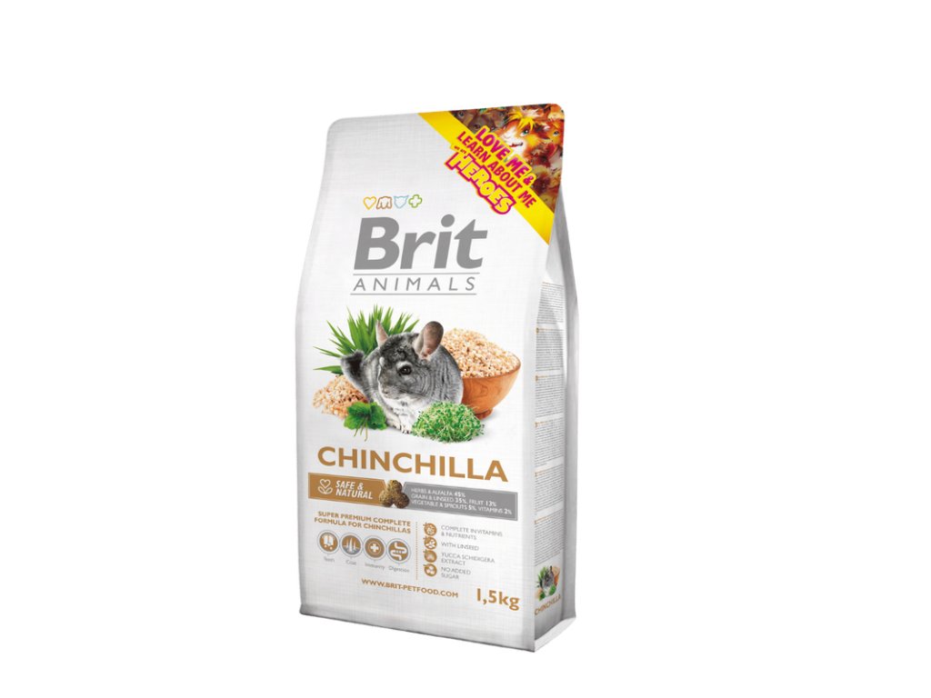 Brit Animals CHINCHILA Complete 1,5 kg – Brit Animals Činčila Kompletní krmivo – superprémiové bezobilné krmivo navržené podle přirozené stravy činčil; podporuje zdravé trávení, lesklou srst a snižuje zápach trusu díky funkčním složkám.