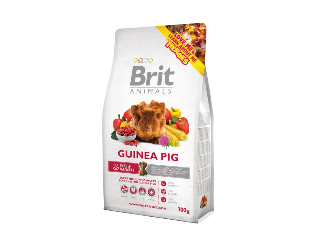 Brit Animals Morče Kompletní krmivo 300g – superprémiové kompletní krmivo pro morčata s přidaným vitamínem C a výživným mixem bylin a zeleniny pro podporu trávení, imunity a zdravého metabolismu.