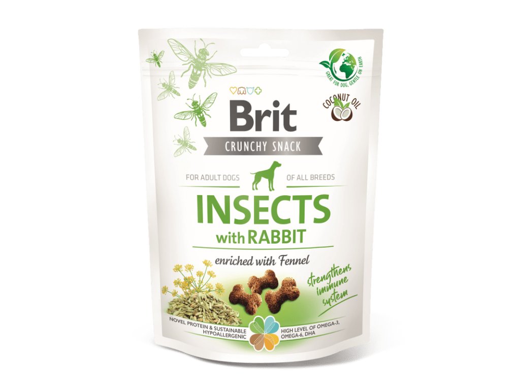Brit Care Bezobilné pamlsky pro psy – Hmyz s králíkem a fenyklem - Chutné hypoalergenní sušenky bez obilovin s hmyzem a králíkem, obohacené o fenykl pro podporu zdravého trávení. Ideální jako funkční odměna při tréninku nebo každodenní mlsání.