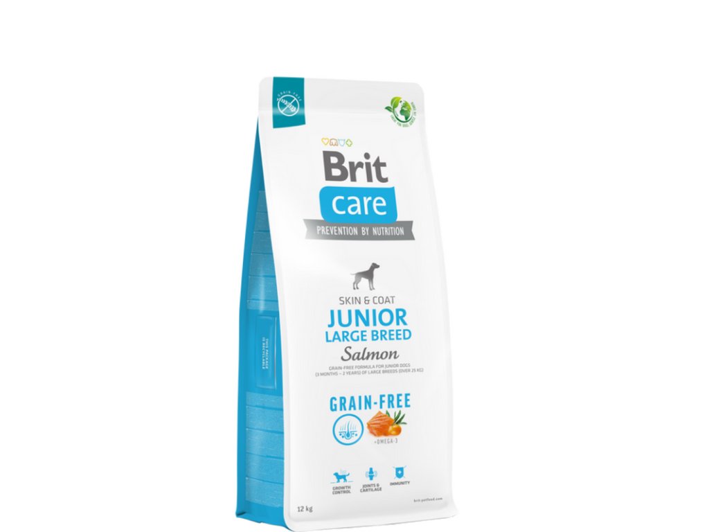 Brit Care Dog Grain-free Junior Large Breed, 12 kg – Brit Care bezobilné granule pro štěňata velkých plemen – superprémiové krmivo bez obilovin s vysokým obsahem lososa, vyvinuté pro podporu správného růstu, zdravého vývoje kloubů a silné imunity u štěňat velkých plemen.