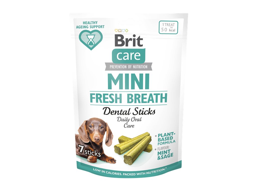 Brit Care Mini pamlsky – Fresh Breath - Malé dentální tyčinky pro svěží dech a zdravou dutinu ústní. Ideální pro malé psy, kteří si potrpí na jemnou, ale funkční péči. Složení s mátou a petrželí pomáhá neutralizovat pach z tlamy a zároveň podporuje trávení.