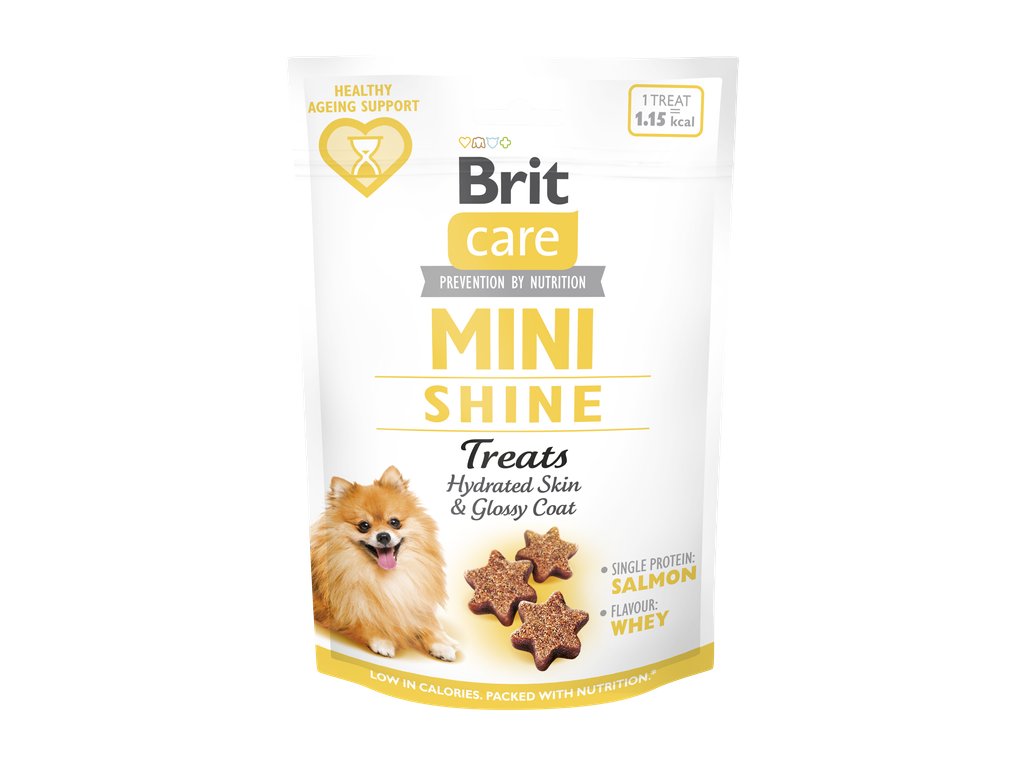 Brit Care Mini pamlsky – Shine - Chutné mini pamlsky s lososovým olejem a lněným semínkem pro podporu zdravé kůže a lesklé srsti u malých psů. Ideální při línání, svědění nebo jako preventivní podpora vzhledu srsti.