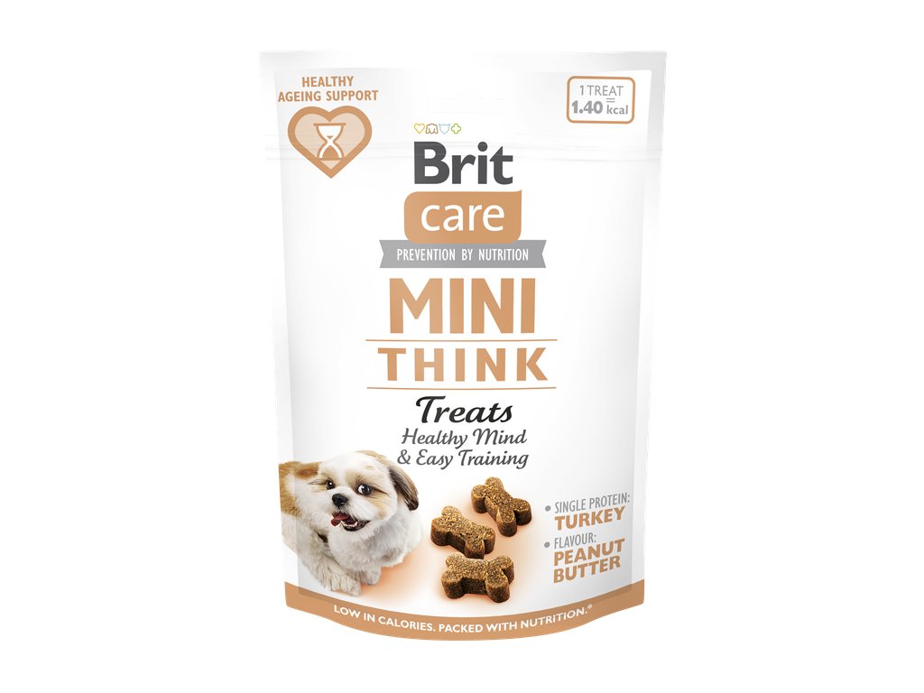 Brit Care Mini pamlsky – Think - Funkční pamlsky s ginkgo bilobou a borůvkami pro podporu mozkové činnosti, koncentrace a mentální aktivity malých psů. Vhodné pro psí seniory, aktivní plemena i při výcviku.