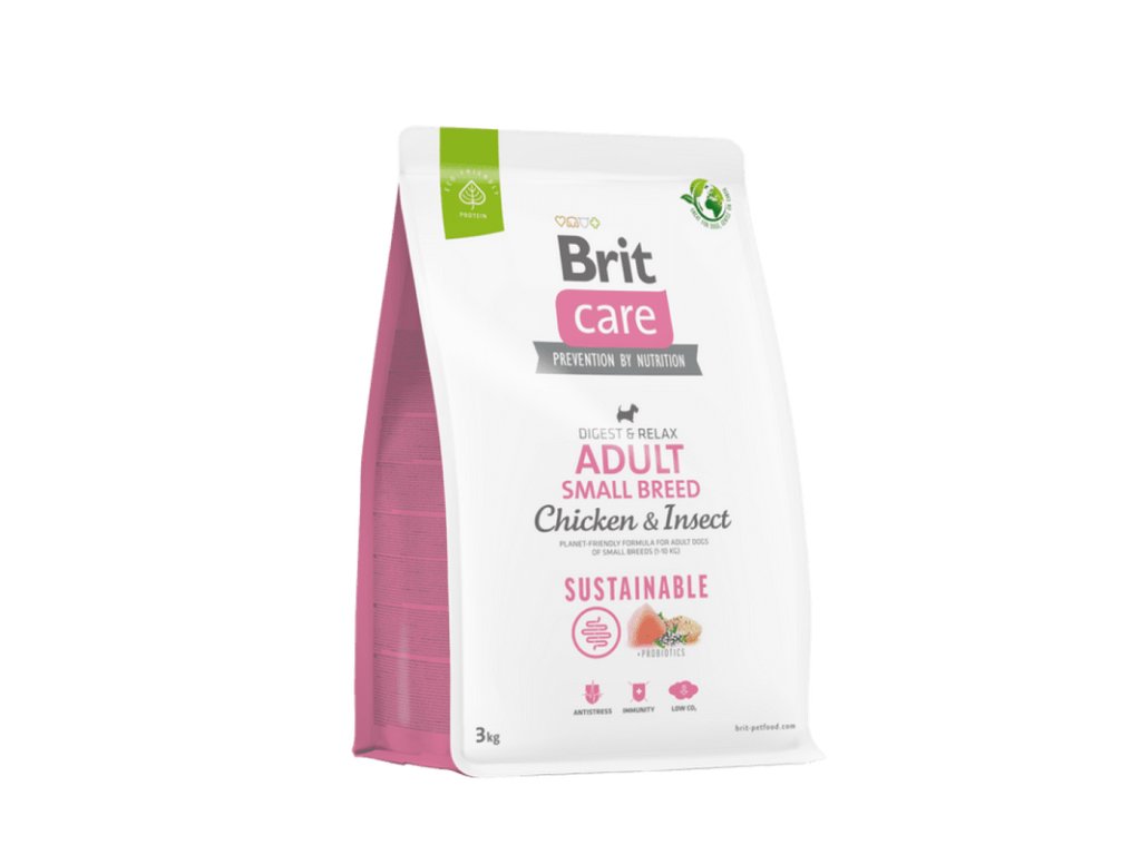 Brit Care Dog Sustainable Adult Small Breed, 3 kg – Brit Care bezobilné granule pro dospělé psy malých plemen – ekologické superprémiové krmivo navržené pro zdravé trávení, vitalitu a imunitu malých plemen, s nižší ekologickou stopou než běžné receptury.