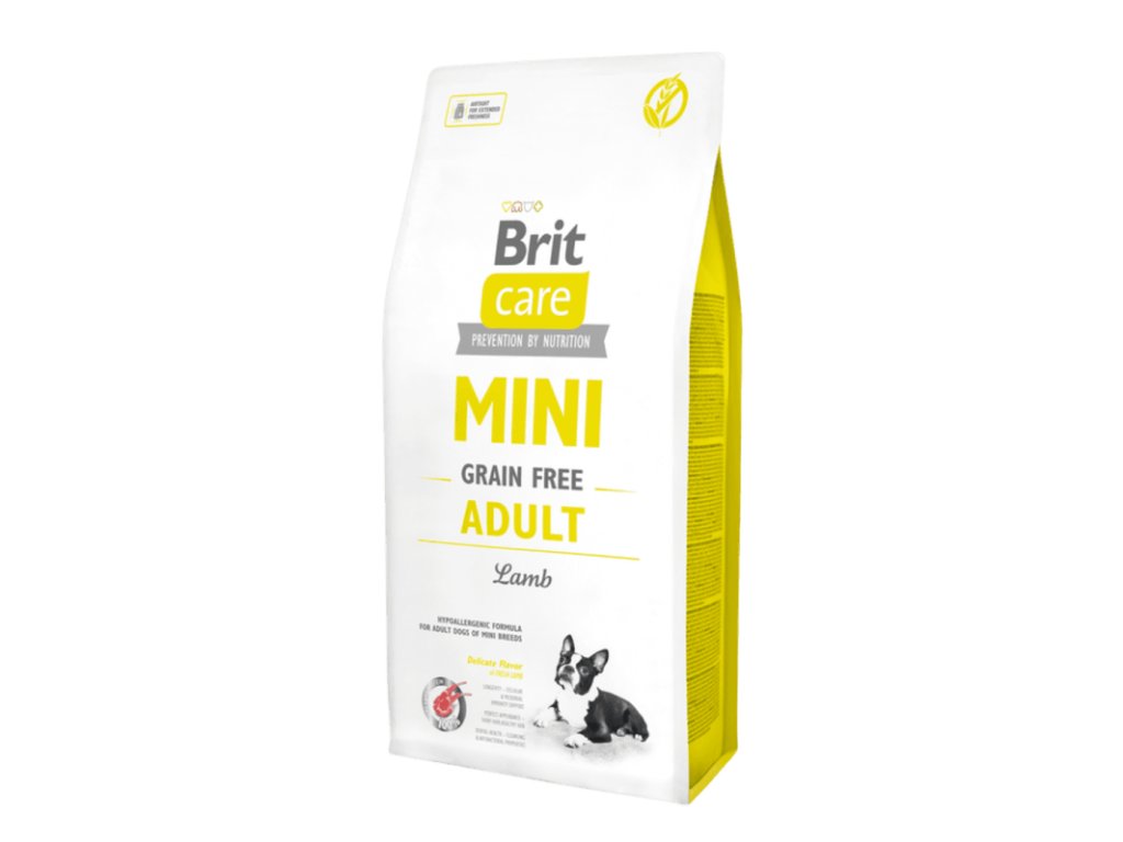 Brit Care Mini Grain Free Adult Lamb 7kg – Brit Care bezobilné granule pro dospělé psy malých plemen – hypoalergenní superprémiová receptura bez obilovin s jehněčím masem, určená speciálně pro potřeby dospělých psů malých plemen. Podporuje zdravé trávení, imunitu, krásnou srst i vitalitu.
