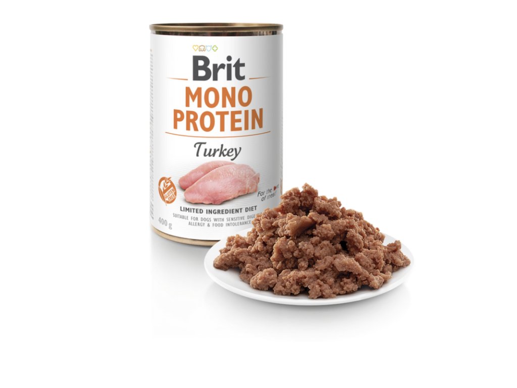 Brit Mono Protein krůta - Monoproteinová konzerva s 100 % krůtím masem – šetrná, výživná a chutná volba pro psy s potravními alergiemi nebo citlivým trávením. Kompletní hypoalergenní krmivo bez obilovin a chemie.