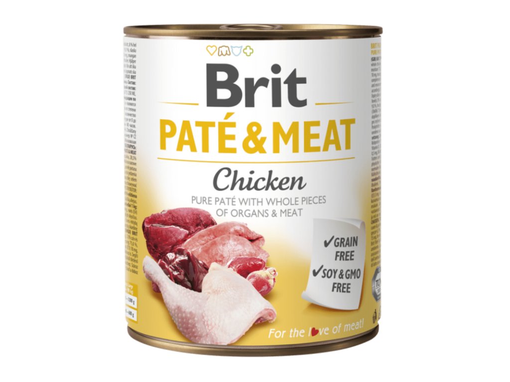 Brit Paté & Meat kuře - Kompletní krmivo pro psy ve formě chutné paštiky s vysokým obsahem kuřecího masa. Bez obilovin, sóji a chemických přísad – ideální pro každodenní krmení i kombinaci s granulemi.