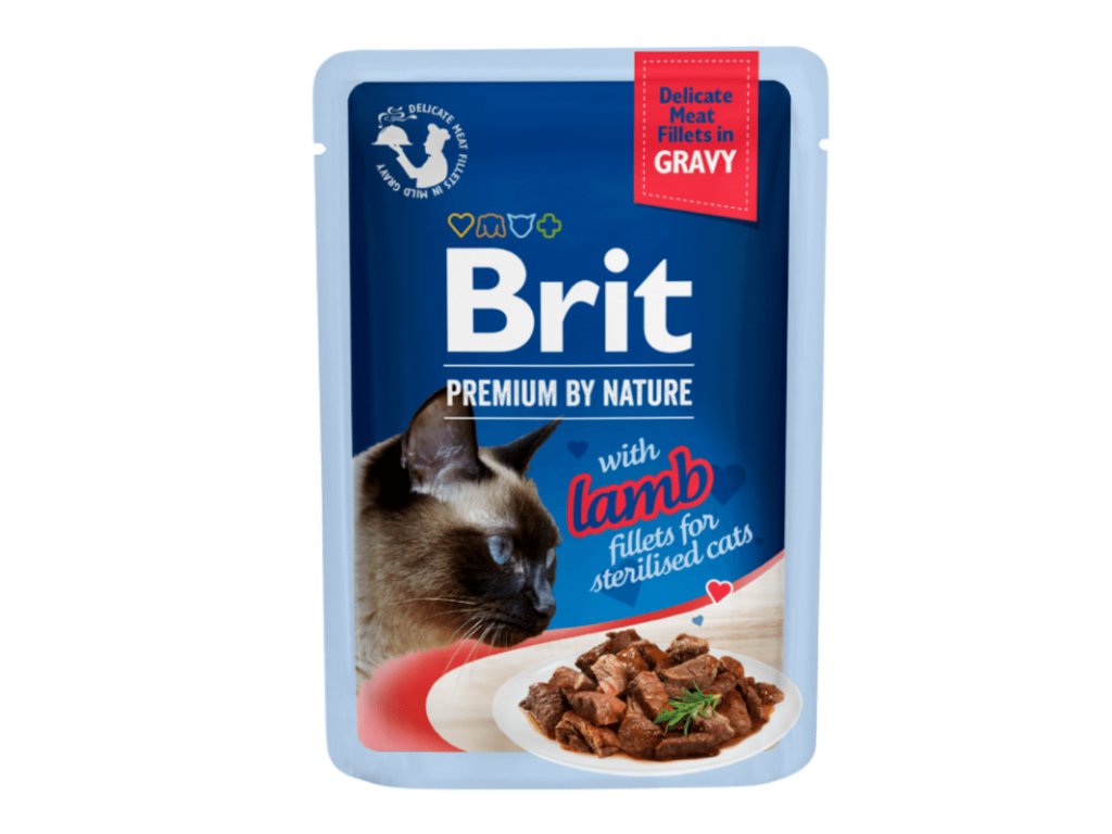 Brit Premium jemné filety v omáčce s jehněčím pro sterilizované kočky - Výživné kousky jehněčího masa vhodné pro sterilizované kočky. Přirozený zdroj energie s vysokou chutností.