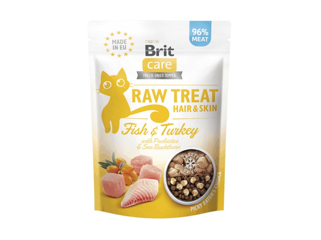 Brit RAW Treat Cat Hair & Skin, 40 g - Přírodní pamlsek s vysokým obsahem živočišných bílkovin a omega‑3 mastných kyselin pro podporu lesklé srsti a zdravé pokožky.