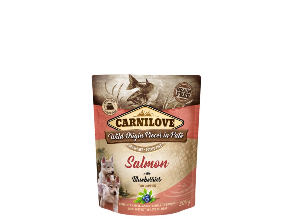Carnilove Dog Pouch Paté Salmon with Blueberries for Puppies - Šetrná kapsička z lososa pro štěňata s borůvkami. Bez obilovin, podporuje vývoj.