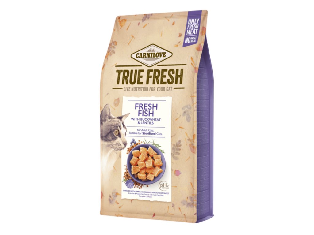 Carnilove True Fresh Cat Fish - Kompletní bezobilné krmivo pro dospělé kočky – z čerstvého masa z ryb pro citlivé zažívání a zdravou srst.