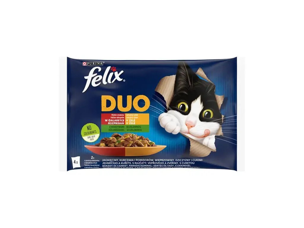 FELIX® Fantastic Duo je řada neodolatelných krmiv, které vypadají, voní a chutnají tak lahodně, jako jídlo, které byste sami uvařili. Každá receptura obsahuje křehké kousky kombinující dvě neodolatelné chutě ve šťavnatém želé. Tak se vaše kočka může do chutného krmiva pořádně zakousnout!