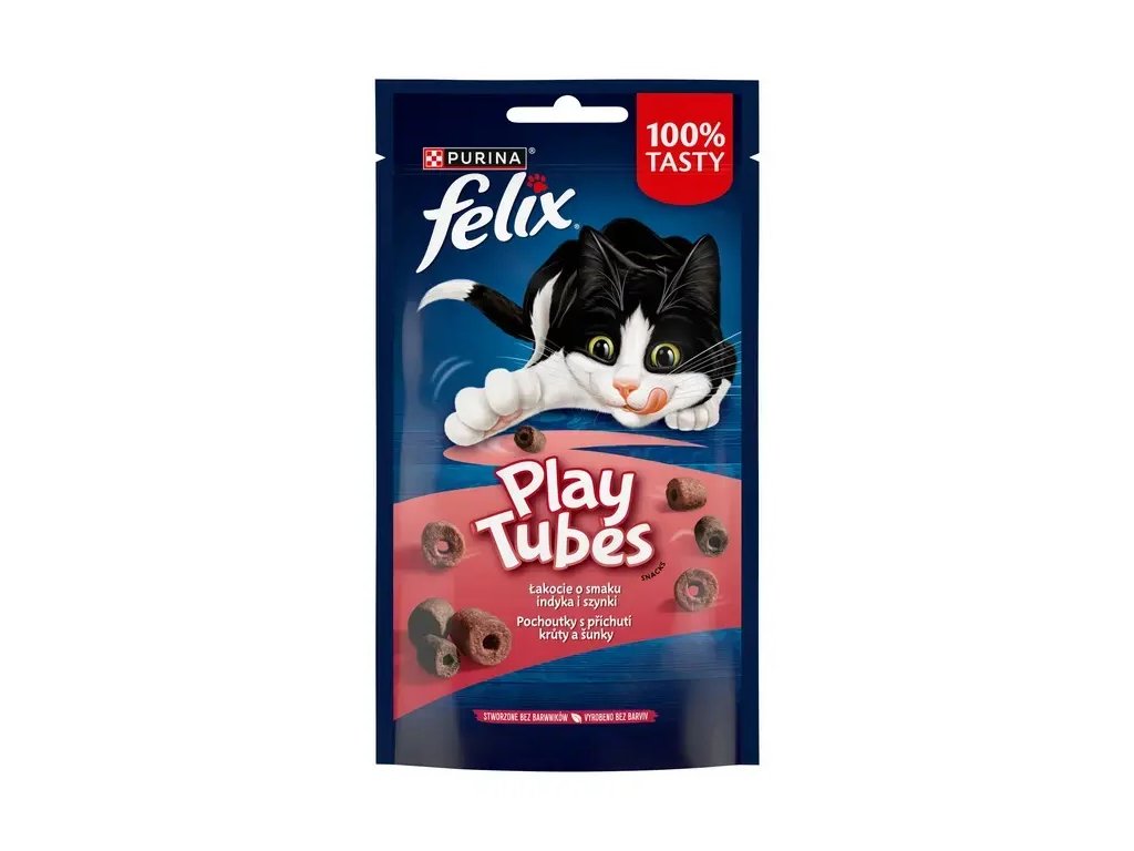 FELIX® Play Tubes jsou chutnou příležitostí, jak spolu sdílet zábavné chvilky! Jsou neodolatelně hravé díky unikátnímu kulatému tvaru, dvěma různým příchutím, různým velikostem a chuti FELIX® pochoutek, které vaše kočka zná a miluje. Jednoduše vezměte pochoutku, hoďte ji nebo kutálejte po podlaze a dívejte se, jak s ní začne vaše kočka rozpustile dovádět!