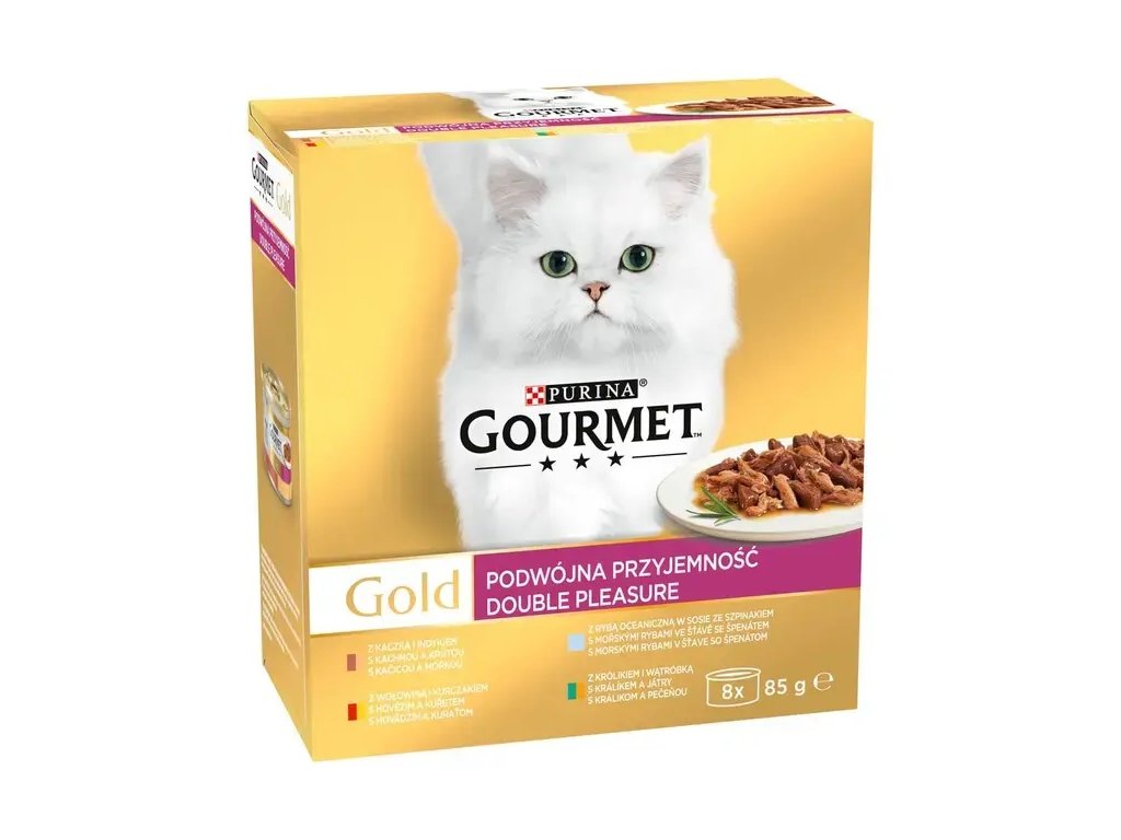 GOURMET Gold Multipack hovězí s kuřetem, králík s játry, mořské ryby se špenátem, kachna s krůtou 8x85g
