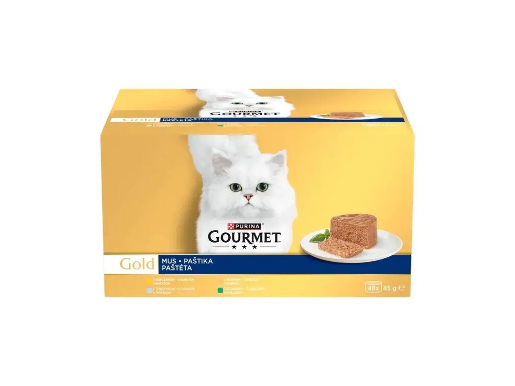 GOURMET™ Gold paštiky: Jemné paštiky s hovězím, kuřetem, lososem a dalšími vynikajícími příchutěmi, pečlivě připravené tak, aby nabídly vaší kočce požitek z delikátní a jemné...