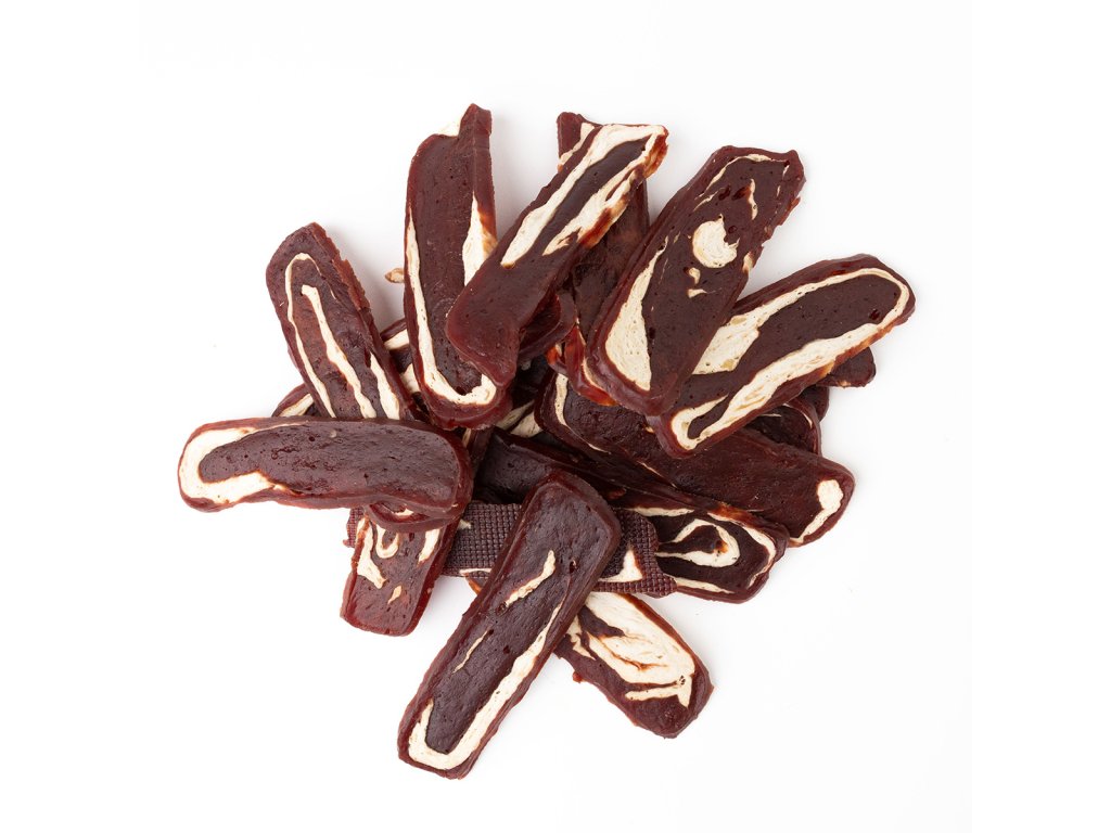 Měkká, přírodní masová pochoutka z hovězího a rybího masa, ve tvaru filetu, které se snadno dělí na menší kousky.