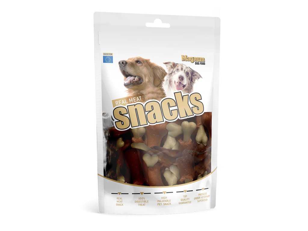 Měkká, přírodní masová pochoutka z kuřecího masa na křupavé kalciové kostičce. Slouží jako odměna při hře, výcviku nebo jako doplněk stravy při cestách.