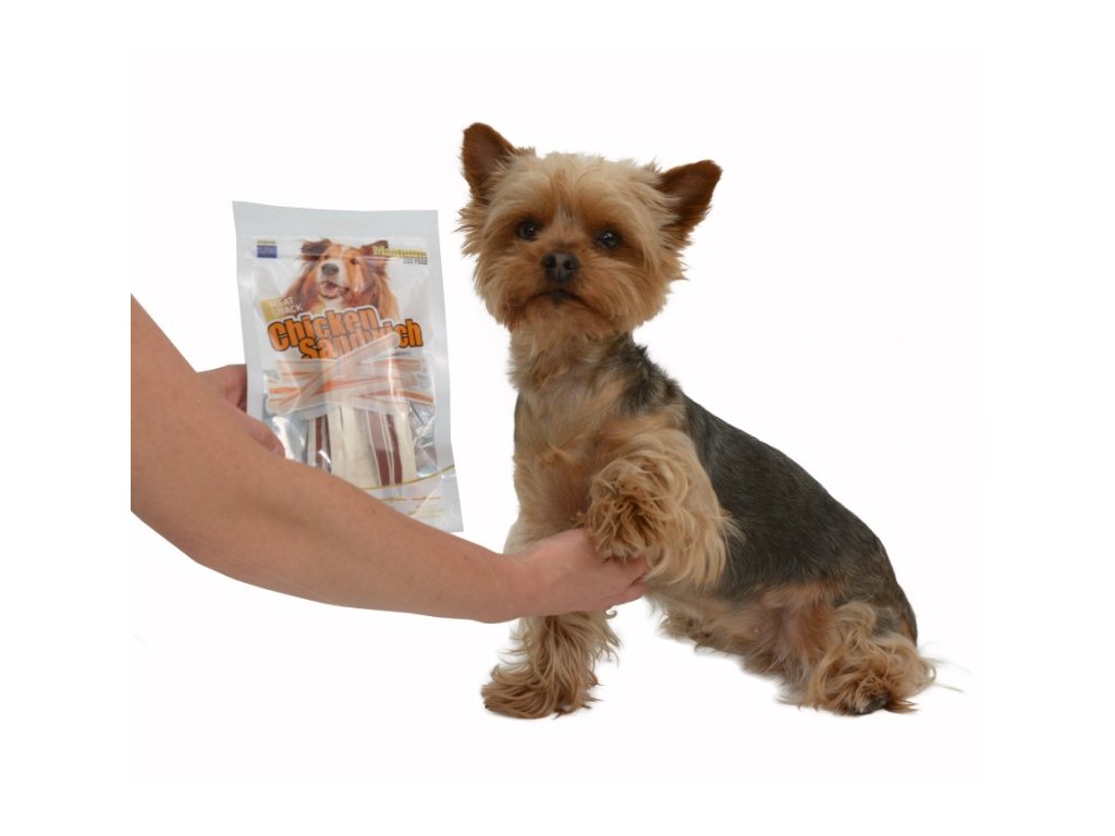 Složení: kuřecí maso, škrob, sorbitol, glycerin.