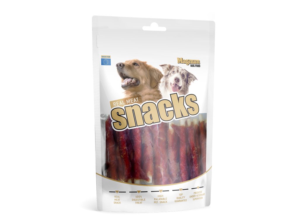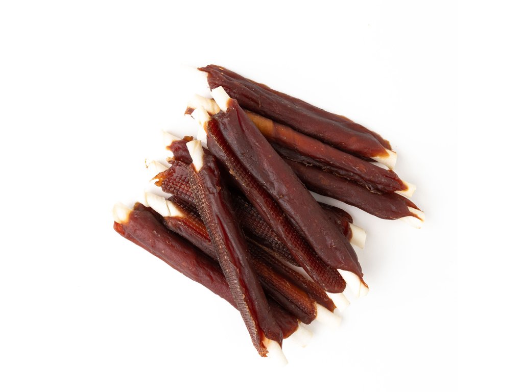 - Tyčka z hovězí kůže obtočená plátkem lahodného kachního masa.