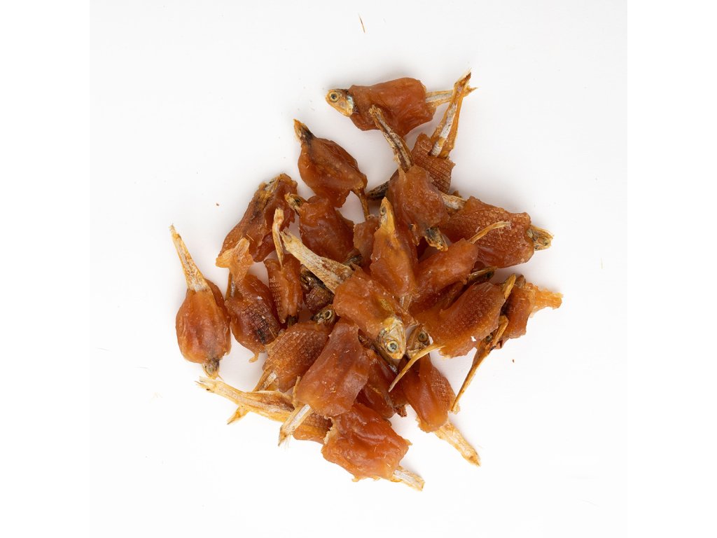 Měkká, přírodní masová pochoutka pro psy. Sušené rybky omotané proužkem kuřecí svaloviny.