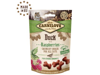 Carnilove Cat Crunchy Snack Duck with Raspberries with fresh meat - Křupavý pamlsek s vysokým podílem čerstvého masa (55 %) – ideální odměna plná antioxidantů díky lesním...