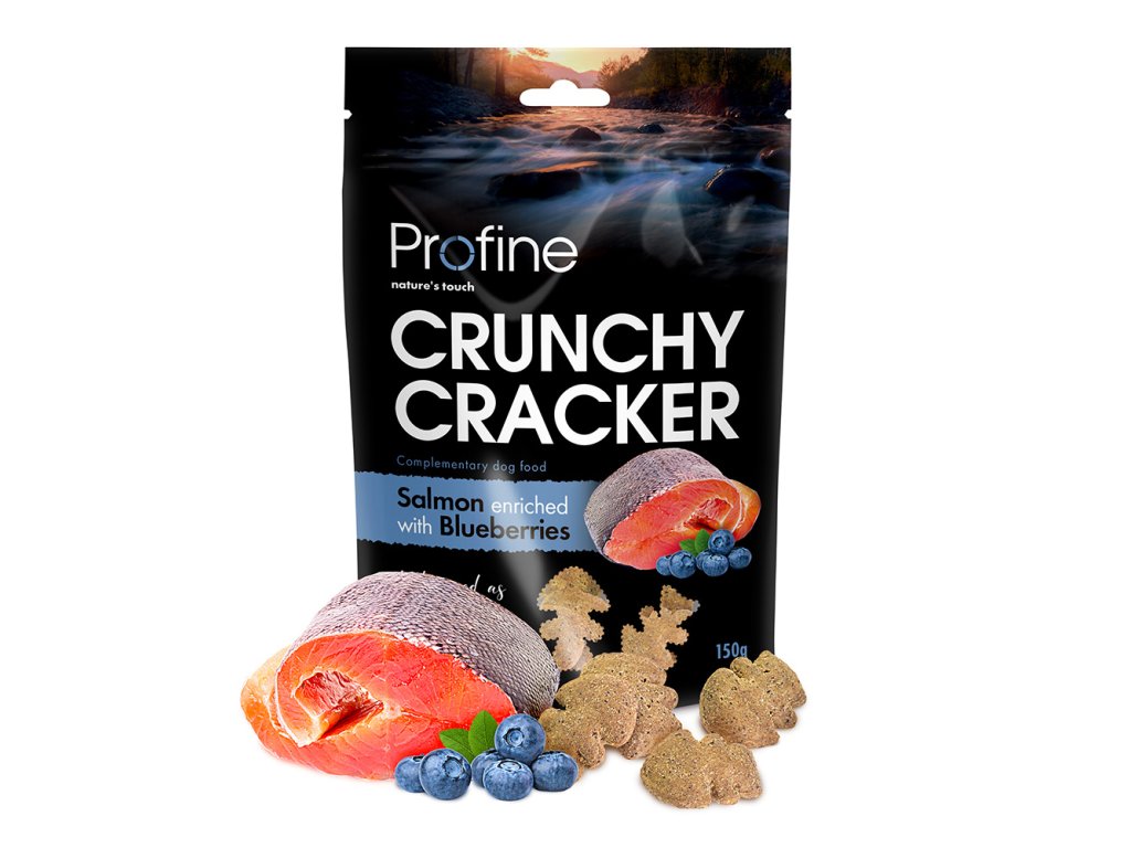 Profine křupavý cracker je doplňkové krmivo pro psy s lososem obohacený borůvkami.