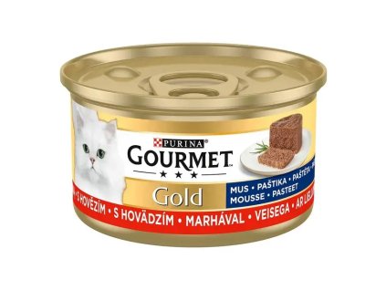 Lahodná a vydatná konzervička Gourmet Gold pro kočky. Atraktivní recepturu s hovězím masem si zamiluje každá kočka!