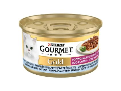 GOURMET™ Gold Double Pleasure obsahuje křehké kousky a šetrně uvařené jemné plátky: ideální spojení dvou různých textur v jedné receptuře tak, aby potěšilo vaši kočku rozmanitou...